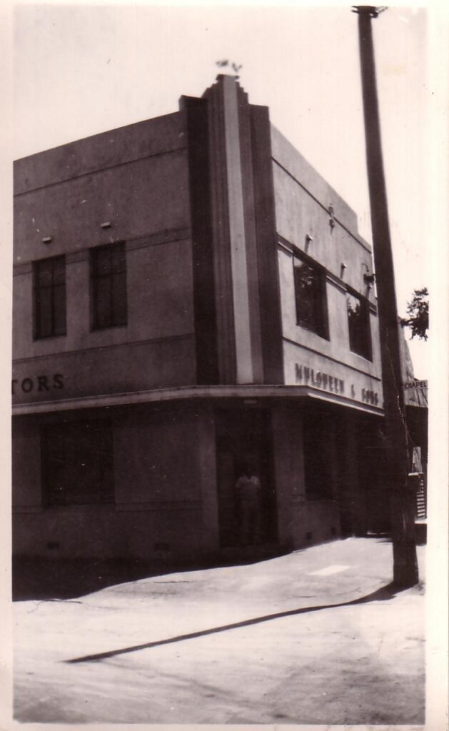 In 1938 the Bendigo Premises were completely remodeled in the Art Deco Style of the era, shedding the Victorian veranda whilst rendering and painting the façade and introducing Metal widow Frames. The newly introduced Business name MULQUEEN & SONS FUNERAL DIRECTORS was emblazoned on side of the new building. It was, and is, one of the best examples of a commercial Art Deco building design in Bendigo.